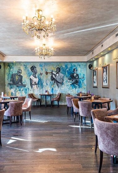 Внимание! Ресторан располагает двумя залами. Обращаем ваше внимание на то, что сцена находится в первом зале. Второй зал отделён от первого перегородкой, в нём идёт трансляция на видеоэкраны.