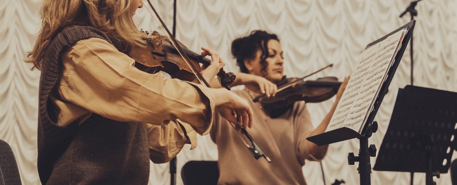 На сцене — ансамбль Петро Арт, в составе которого классические смычковые инструменты: скрипки, альт, виолончель и контрабас, и певица Янина Прокопенко. Саундтреки при свечах в симфоническом звучании — что может быть лучше!