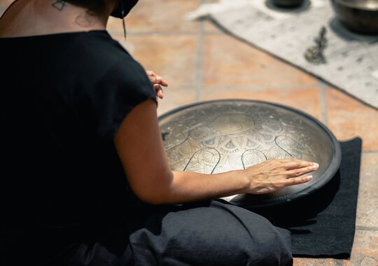 В их руках хэндпаны, синты, гусли, барабаны, глюкофоны, духовые, диджериду, сплетаются в лупере для высокогорной космической прогулки.