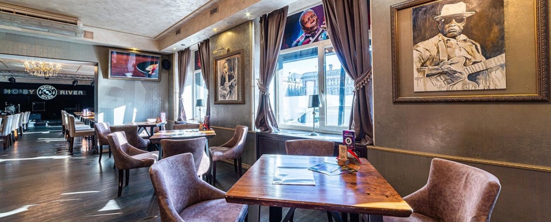 Внимание! Ресторан располагает двумя залами. Обращаем ваше внимание на то, что сцена находится в первом зале. Второй зал отделён от первого перегородкой, в нём идёт трансляция на видеоэкраны.