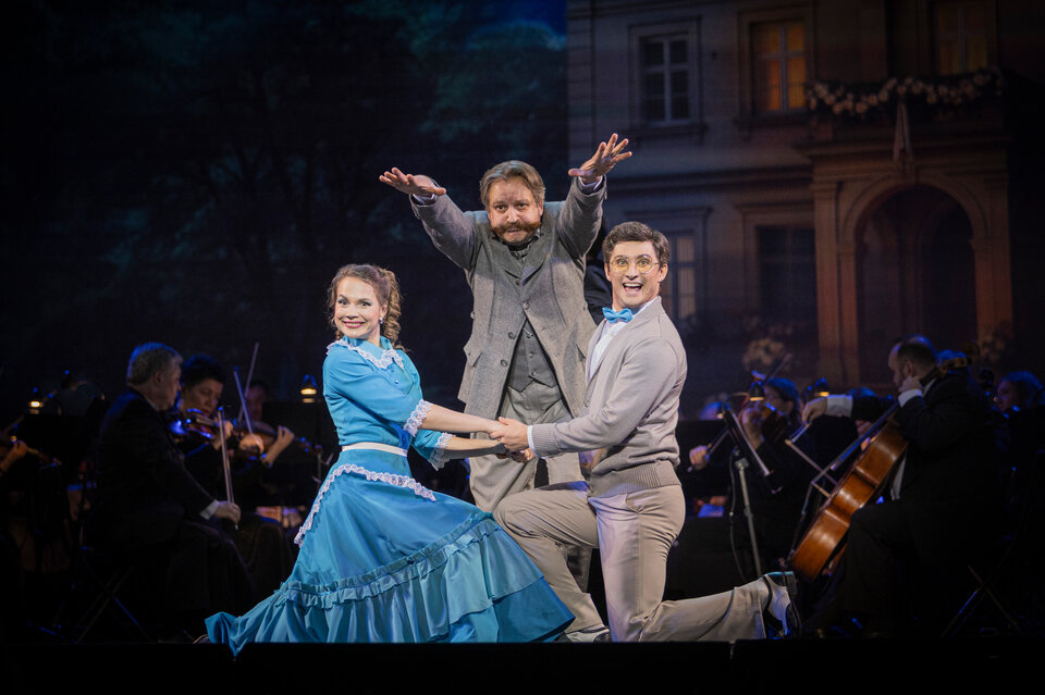 Знакомство с неизвестными или мало исполняемыми произведениями выдающихся композиторов оперетты в концертном исполнении было положено в сезоне 2024/25 гг., когда в стенах Театра музыкальной комедии впервые прозвучал «Царевич» Легара. Для следующей встречи был выбран ещё один прекрасный образец жанра от выдающегося классика, сценическая судьба которого на русской сцене была чуть более успешной. В афише Театра музыкальной комедии «Цыганская любовь» появлялась трижды: в 1934, 1936 и 1960 годах, каждый раз не только с новой группой постановщиков и исполнителей, но и с новой версией либретто. При этом основная сюжетная линия — история девушки, которая, выбирая между двумя влюблёнными в неё юношами, на собственном опыте убеждается, что синица в руках лучше журавля в небе, — оставалась неизменной. Оксана Антоненко, режиссёр: «Представляя второй показ из проекта концертного исполнения редко идущих оперетт, мы выходим за рамки традиционного формата концерта. Практически оперный масштаб «Царевича» Ф. Легара, с которым мы знакомили зрителей в прошлом году, обусловил сценическую сдержанность. Драматическая фабула в нём задавала стиль.Сюжет «Цыганской любви» отличается бОльшим юмором и наличием психологических коллизий, близких современному человеку: сомнения, неуверенность в своих чувствах, ревность. Уже на этапе разбора материала у солистов возник эффект узнавания в персонажах себя. И могу сказать, что это способствовало их эмоциональному вовлечению. Надеюсь, это передастся и зрителям, ведь мы заинтересовываемся произведением, когда видим, что его героев беспокоят такие же вопросы, как и нас. Сама оперетта, её игровая стихия, продиктовала сценический ход и задала формат. Решив рассказать историю через сновидение героини, мы вышли за пределы исключительно вокального исполнения и практически приблизились к формату мини-спектакля. Зрелищная составляющая жанра сохранилась — любимые зрителями танцевальные номера присутствуют. И здесь хочется отметить работу молодого хореографа Александры Косик, которая полноценно дебютирует в этом проекте — каждый номер она выстраивает драматургически, отлично понимая природу жанра. Художественный мир мы создаём в формате видеодекорации с помощью художников-аниматоров под руководством главного художника театра Ирины Долговой. Магия превращения тоже передана театральными приемами. Серьёзную работу с оркестром и солистами провёл музыкальный руководитель и дирижёр Алексей Нефедов. Чтобы исполнить музыку Франца Легара во всей её красоте, мы решили полностью отказаться от микрофонов и дать возможность артистам наполнить зал своими голосами, что их невероятно воодушевляет. Ждать ли продолжения проекта? Мне бы очень хотелось. Потому что благодаря этому формату нам довелось познакомиться с новыми интересными произведениями». Премьера состоялась 15 ноября 2025. Режиссёр — Оксана Антоненко. Музыкальный руководитель и дирижёр — лауреат Премии Правительства РФ Алексей Нефедов. Художник — Ирина Долгова. Балетмейстеры — Александра Косик, Владимир Романовский. В главных ролях: Ирина Мулярчик, Алексей Коновалов, Иван Корытов, Оксана Крупнова, Роман Вокуев, Анастасия Лошакова, заслуженный артист России Александр Байрон и другие. В составе исполнителей возможны изменения без дополнительного уведомл