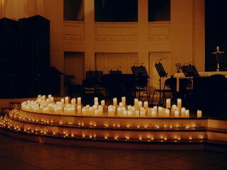 На сцене — горящие свечи и симфонический оркестр, а в воздухе — встреча с любимыми рождественскими мелодиями, которые мы знаем с детства.