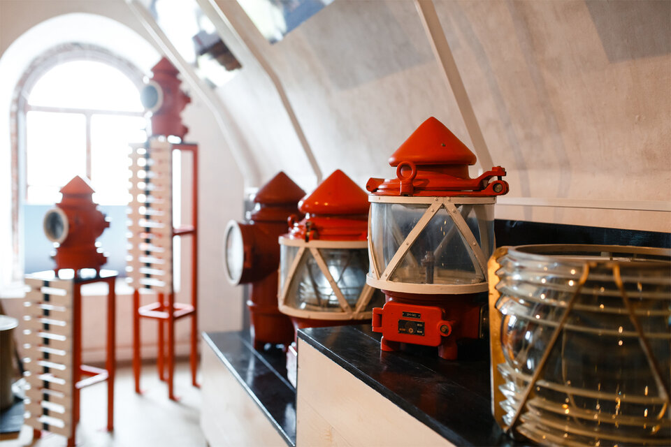 В залах музея модели маяков перемигиваются тем же световым кодом, что и их «старшие братья» в акваториях, огромные линзы, ацетиленовые источники света, использовавшиеся на маяках без электросети, переносные фонари, которые отмечали Дорогу жизни и многое другое.