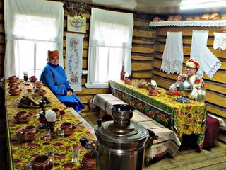14:30 (ориентировочно) – переезд в староверческую Усадьбу в деревне Ляково. Горячий обед, чай из самоваров с домашними пирогами. Знакомство с бытом Усадьбы, народные игры и развлекательная программа. Вас ждет веселая театрализованная новогодняя программа, с неожиданными сюжетными поворотами и сюрпризами. Особенный яркий колорит, достоверность и домашний уют нашему чудесному знакомству придадут подлинные интерьеры старообрядческого дома.