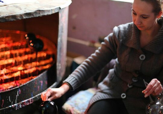 На фабрике елочных игрушек работают стеклодувы и художники, которые делают каждую игрушку уникальной, создавая её от начала и до конца. Сказочные жар-птицы, ослепительные царевны, диковинные цветы, заснеженные домики и многое другое выходит из рук мастеров фабрики с необычайной легкостью..