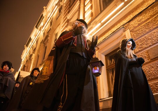 Спектакль-променад «Новогоднее путешествие» с фонарщиком Фаролеро по Санкт-Петербургу.