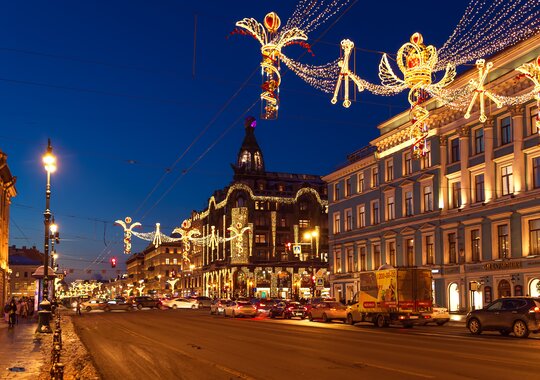 Что включено: Услуги гида, Автобус туристического класса, 2-3 фото-остановки у главных новогодних мест Санкт-Петербурга