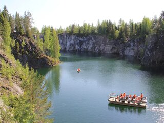Горный парк Рускеала — настоящая жемчужина Карелии и основная цель путешествия. Здесь вы полюбуетесь волшебными пейзажами, сделаете сотни замечательных фото и при желании испробуете активные развлечения для любителей экстрима. Захватывающий дух полет на троллее среди мраморных скал или прыжок с тарзанки прямо над Изумрудным озером — действительно впечатляют!