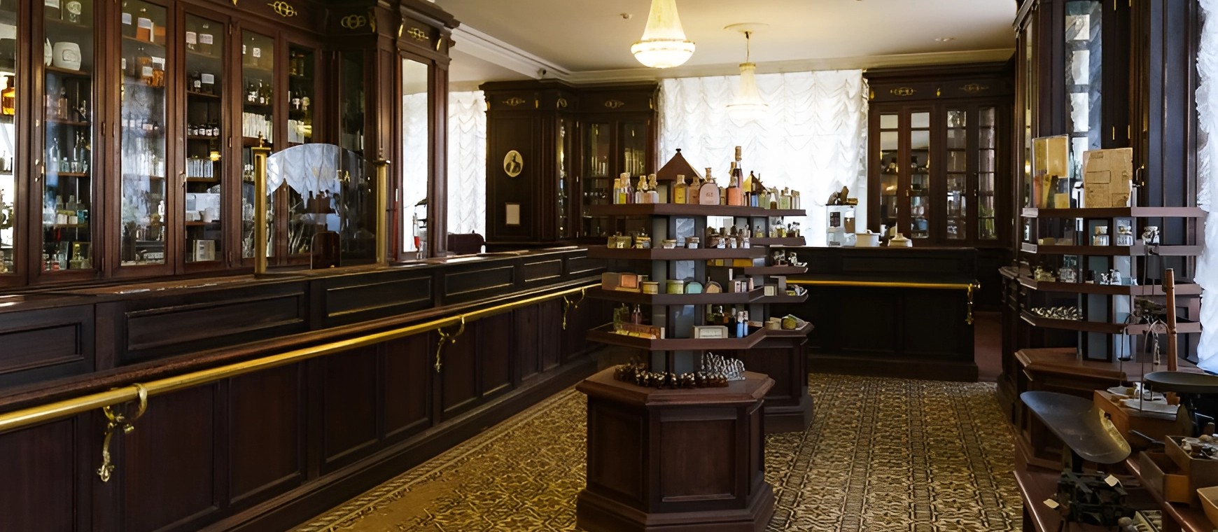 На экскурсии вы узнаете о развитии фармацевтики в России, зелейных лавках, первых аптеках Санкт-Петербурга и конечно, познакомитесь со знаменитой династией аптекарей Пелей. Новаторы своего времени, поставщики лекарств ко двору его императорского величества, которые одними из первых в России произвели таблетки, ампулы и позолоченные пилюли.