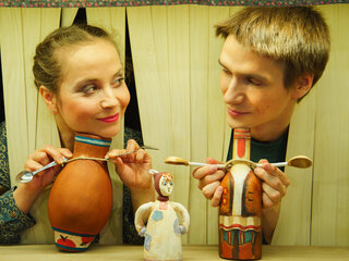 Спектакль начнётся с прямого общения актёров с маленькими зрителями, речь пойдёт о народных ремеслах. Мы познакомимся с гончарным делом. Зрители уютно расположатся на подушках. Ребята узнают, что такое гончарный круг, и как получаются изделия из глины, ответят на несколько вопросов. А дальше из домашней глиняной утвари и глиняных игрушек возникнет спектакль!