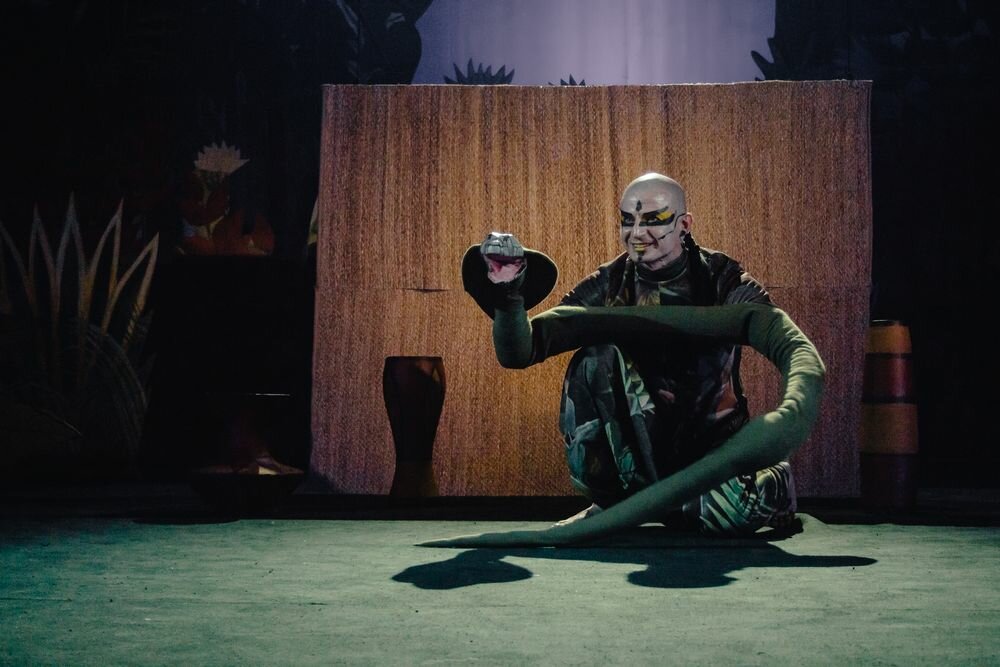 «Рикки-Тикки-Тави» — спектакль, в основу которого положен одноименный рассказ писателя Редьярда Киплинга из «Книги джунглей». Кто не знает историю храброго мангуста Рикки-Тикки-Тави, спасшего семью англичан от неминуемой гибели от укуса змей? Действие сказки разворачивается в джунглях, а героями истории становятся экзотические животные — мускусная крыса Чучундра, птичка-портной Дарзи, индийские кобры Наг и Нагайна и др. Где, как не в театре кукол, возможно в полной мере воплотить всю эту флору и фауну? Художник Марина Завьялова создала на сцене настоящие тропические джунгли в стиле Анри Руссо. Герои спектакля, которых играют молодые актеры БТК, представлены на сцене с помощью кукол, масок и необычных костюмов. Постановка наполнена танцами и пластическими номерами, музыку к которым сочинил Анатолий Гонье.