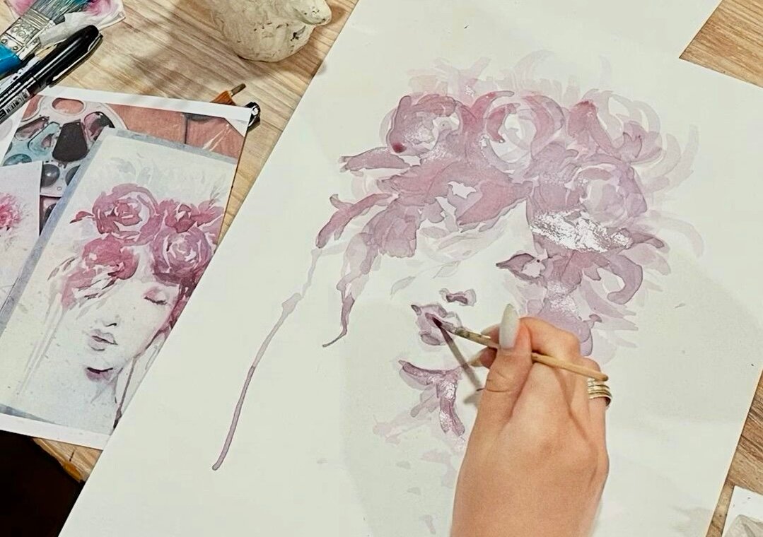 За 2–3 часа сделаем рисунок вином на бумаге! Встреча проходит в уютной мастерской художника за бокалом и прослушиванием музыкальных пластинок.