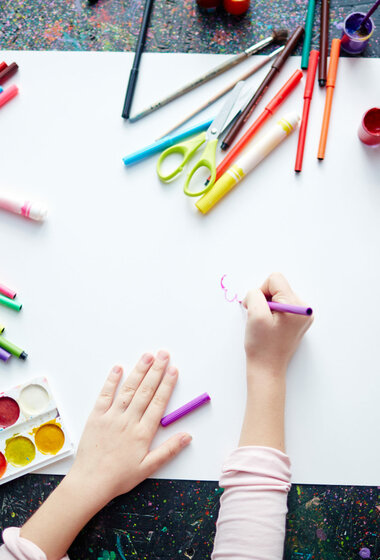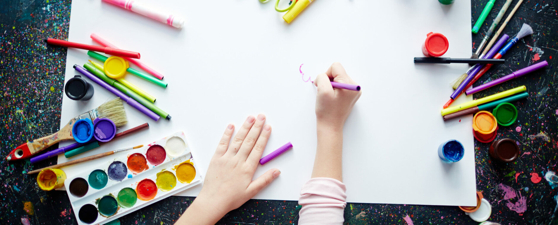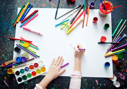 На занятиях мы научимся работать с разными материалами и фактурами: от гуаши и пастели до воска и чернил, от бумаги и картона до пряжи!