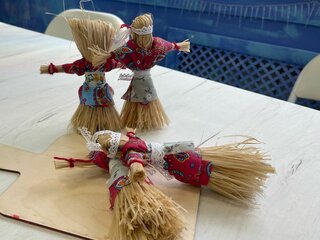 На мастер-классе «Народная кукла» участники могут выбрать между созданием славянской куклы-оберега из ниток, символизирующей защиту и удачу, или куклы «Стригушка» — танцующей куклы из лыка, которая приносит радость и жизненную энергию.