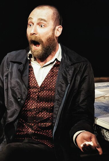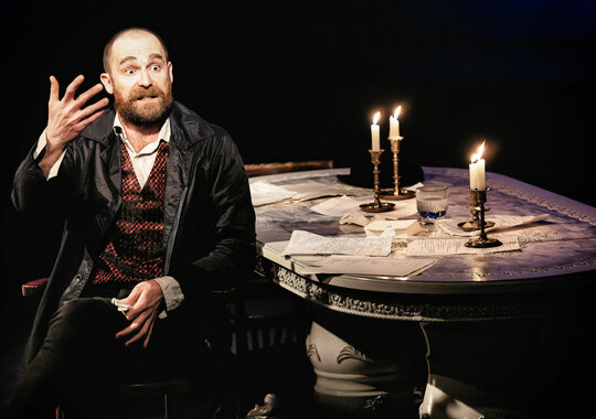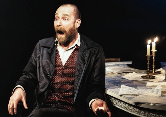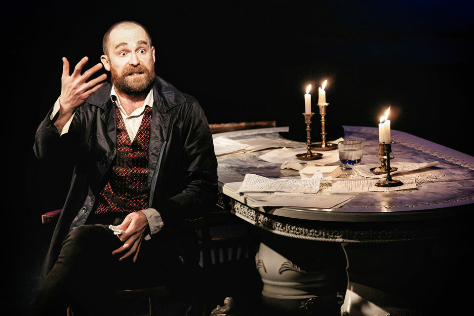 Это история, которой не было в «Идиоте». Тоцкий в спектакле — и герой Достоевского, и не совсем. Это самостоятельный сюжет — ход подобен развитию темы в музыке, актёр, режиссёр и драматург исследуют то, что осталось за кадром: каким был человек, раз и навсегда предопределивший судьбу Настасьи Филипповны?