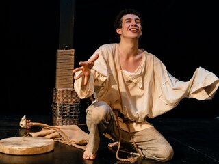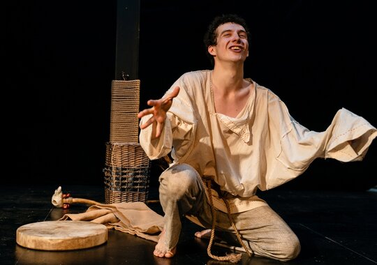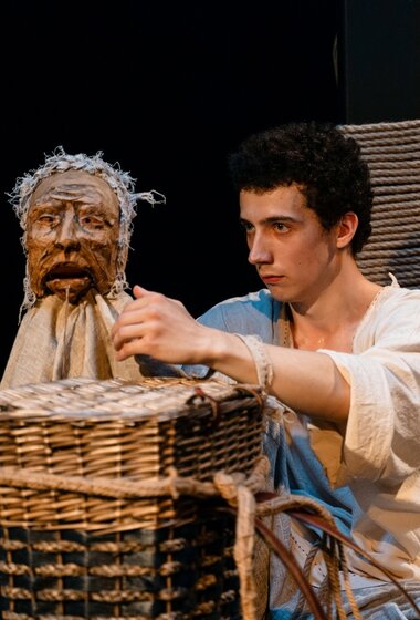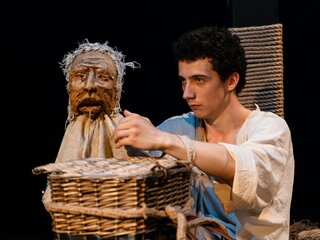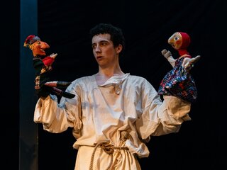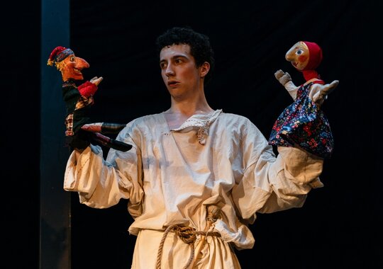 Спектакль полон юмора, разнообразных придумок, пластических трюков и перевоплощений.