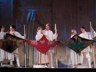 Смешав разные жанры, режиссер при помощи выразительных музыкальных номеров, красочных декораций и чудаковатых, очень симпатичных персонажей создал атмосферу праздника.