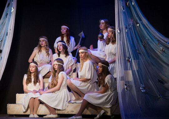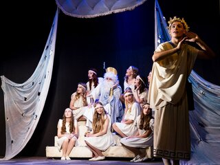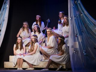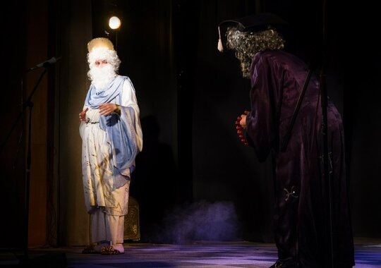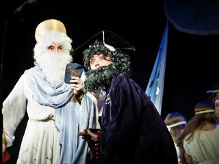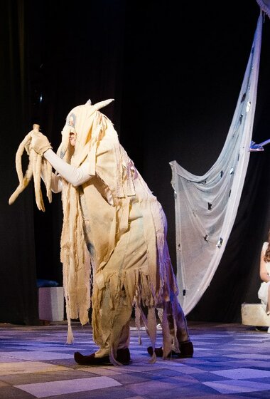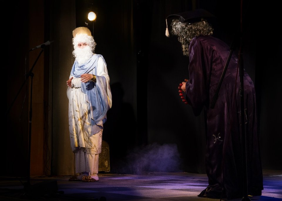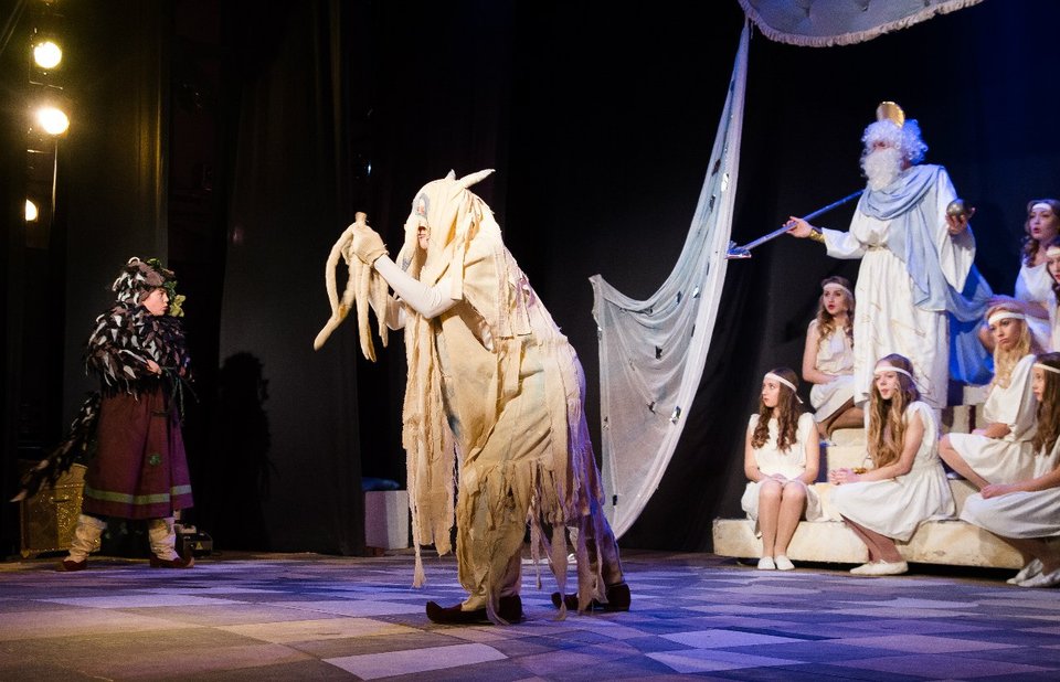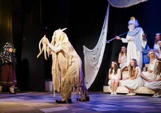 В спектакле много музыки, танцев, сценических эффектов. Яркие декорации и костюмы создают необыкновенно сказочную атмосферу.