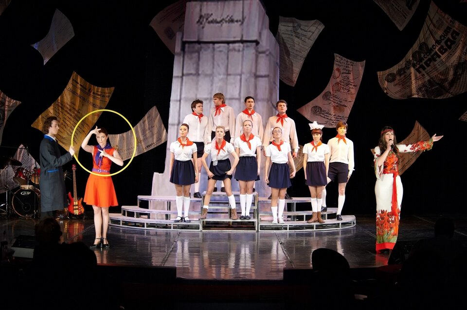 В ярком и талантливом исполнении артистов театра «Буфф» прозвучат культовые песни тех лет, обладающие особой мелодикой и очарованием. На сцене — хорошо узнаваемые персонажи минувшего времени, и у каждого из них в спектакле есть своя история. Из этих историй, как из маленьких осколков, складывается мозаика, в которой запечатлены те самые семидесятые: пионеры в аккуратно повязанных красных галстуках, девушки в летящих платьях в горошек, ностальгическая нотка «Голубого огонька»...