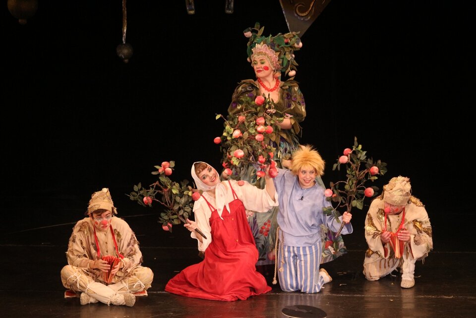 «Гуси-Лебеди и Баба-Яга» — один из самых популярных и самых красивых спектаклей репертуара. Удивительные декорации и костюмы этой театральной сказки похожи на ожившие картинки любимой детской книги, их хочется рассматривать снова и снова. Волшебная яблонька с матушкой-печкой так и пышут здоровьем, кажется, до самых последних рядов зрительного зала долетает аромат горячих пирожков и наливных яблочек. Баба-Яга со своей верной избушкой совсем и не страшные: на одной симпатичное фиолетовое платьице, украшенное мухоморчиком, на другой — яркие осенние листочки, подсолнухи да зеленая лягушечка сбоку. А что до гусей-лебедей (в шикарных, кстати, косоворотках), так они просто скучающие лоботрясы, и большинству мальчишек в зале их хулиганские выходки очень даже понятны. Здесь нет вопиюще злых героев, есть те, кто обделены простыми человеческими чувствами: заботой, вниманием, любовью. Нет и приторно положительных — есть те, кто ошибаются и на ошибках своих учатся. А вместе с героями сказки и маленькие зрители учатся добру, чуткости, сердечному отношению к близким людям. Спектакль идёт с одним антрактом. Обязателен билет для ребёнка от 3 лет. Дети, не достигшие 3-летнего возраста, проходят в зал по билету сопровождающего взрослого. Но просим учесть, что ребёнку до 3 лет не предоставляется отдельное место, — он будет сидеть на коленях у одного из родителей.