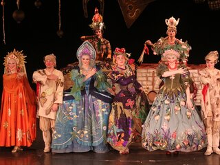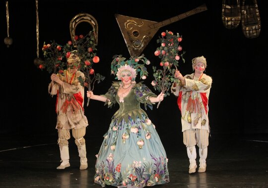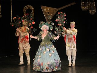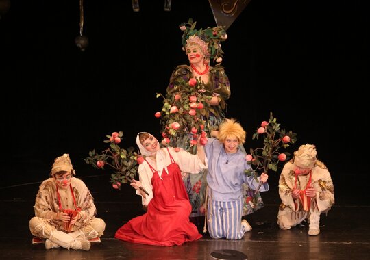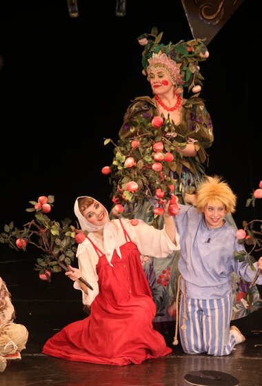 «Гуси-Лебеди и Баба-Яга» — один из самых популярных и самых красивых спектаклей репертуара. Удивительные декорации и костюмы этой театральной сказки похожи на ожившие картинки любимой детской книги, их хочется рассматривать снова и снова. Волшебная яблонька с матушкой-печкой так и пышут здоровьем, кажется, до самых последних рядов зрительного зала долетает аромат горячих пирожков и наливных яблочек.