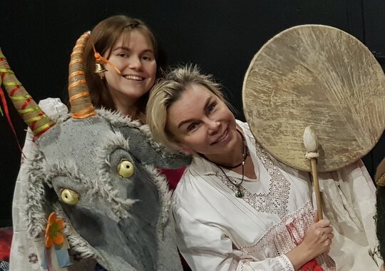 Девичник мог длиться несколько дней и всегда сопровождался особыми обрядами и сказами. Вот и в нашем спектакле 4 женщины, готовя приданое, расплетая девичью косу, паря невесту в бане, ведут историю о том, как все создавалось, как Солнце и Луна пришли к своему порядку, как все повторяется в природе и на земле — точь-в-точь как в человеческой жизни.