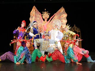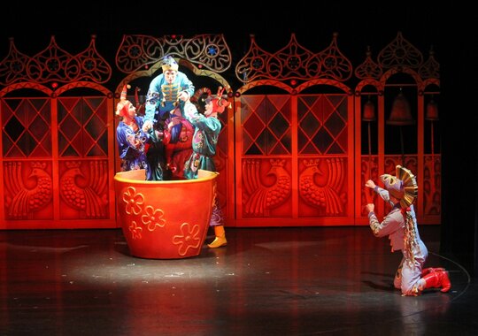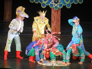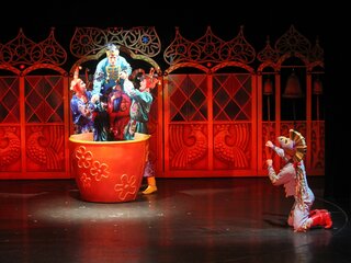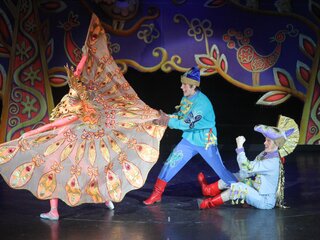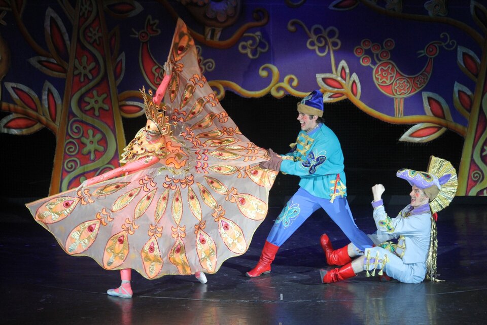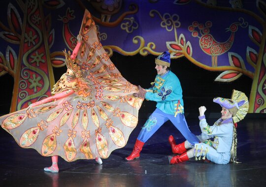 В спектакле роскошные костюмы и декорации, великолепная музыка, необычные сценические эффекты и бутафория, оригинальный свет. Фольклорные элементы сочетаются с современной музыкой и хореографией; текст сказки звучит в стихах, полных искрометного юмора. В спектакле заняты преимущественно молодые актеры, в хореографических номерах — балетная труппа театра! Благодаря режиссерским находкам и актерскому исполнению чудеса происходят прямо на глазах!