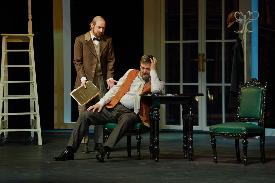 «У богатого предпринимателя расстраиваются дела. Он в долгах у банкиров и прочих кредиторов. Чтобы спасти накопленное богатство, он объявляет фиктивное банкротство. История, которая, увы, имеет место и в наши дни. Обман, нечестный поступок, а в результате рушится семья, рушится жизнь... Кто в этом виноват?» — с этим вопросом режиссёр-постановщик н. а. РФ Исаак Штокбант обращается со сцены к сегодняшнему зрителю, а в союзники себе берёт Музыку.