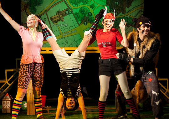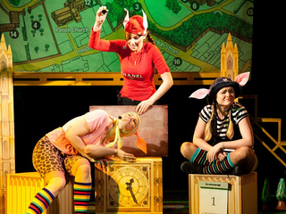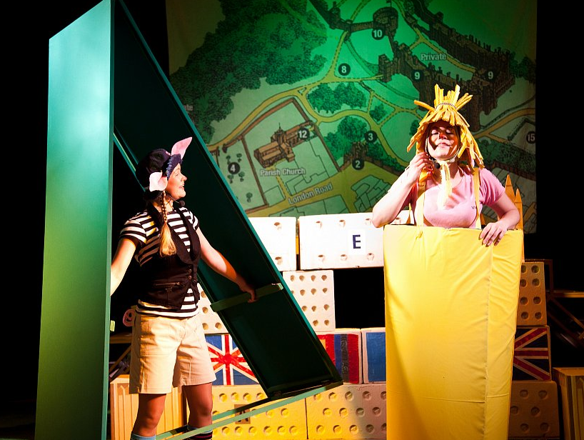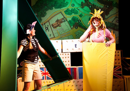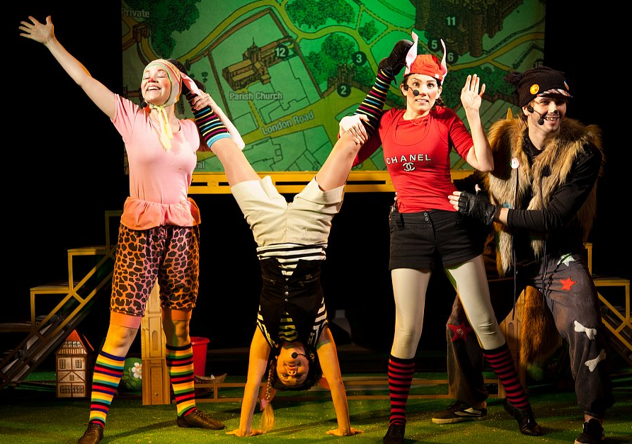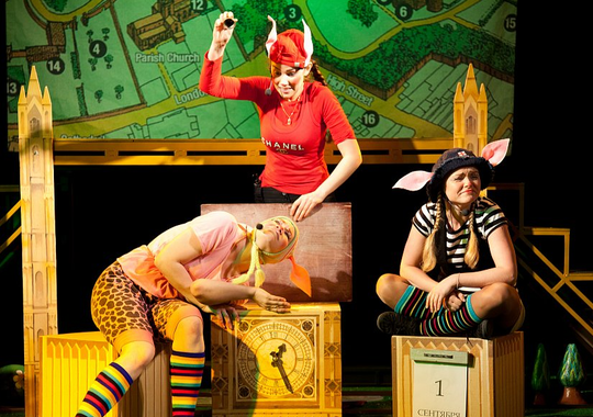 Так как «Три поросёнка» — сказка английская, то в оформлении спектакля можно увидеть некоторые лондонские достопримечательности.