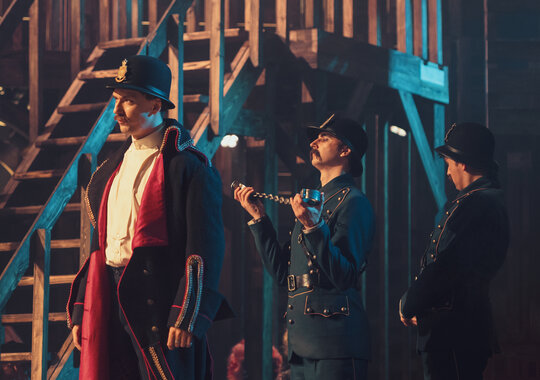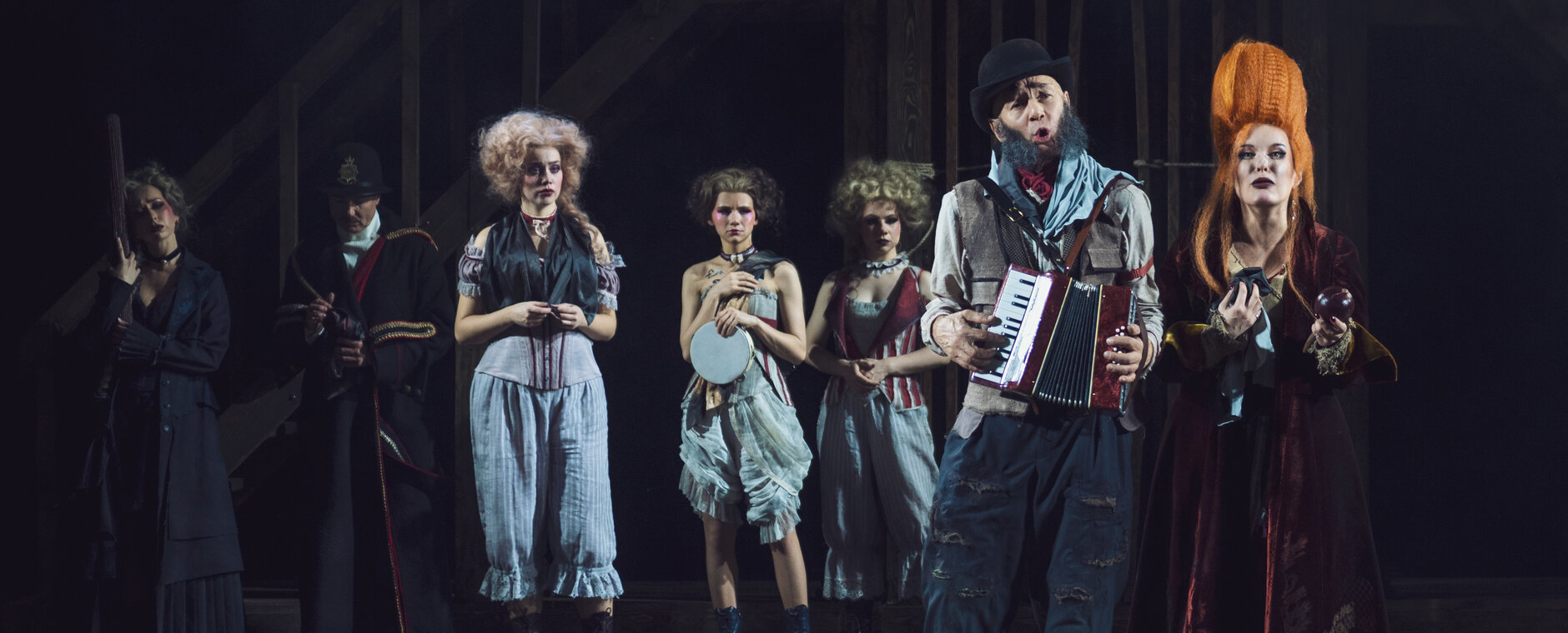 Музыкальный спектакль по мотивам пьесы Джона Гея «Опера нищих». Преступный мир старой Англии окутан предчувствием роковых перемен. Легендарный герой преступного мира, Джек Шеппард, ставший прообразом персонажа спектакля — Мэкхита, снискал славу у всех слоёв общества восемнадцатого века, став «звездой», героем песен и даже проповедей. Его жизнь и стала отправной точкой нового спектакля Алексея Франдетти. История старой Англии сочно рисует картину общества, в котором закон и преступление смыкаются. Привычные ценности вывернуты наизнанку: женитьба равносильна фиаско, убийство — «модный трэнд», а раскаяние ведёт к гибели. Сатира восемнадцатого века оживает на сцене двадцать первого века. Спектакль «Трёхгрошовая история» — смешение высокого стиля и манерности с фамильярным жаргоном, мелодиями популярных песен, баллад и оперных арий. Режиссёр подчеркивает карнавальную структуру спектакля, его площадную природу. Это музыкальная сказка, которая никогда не может повториться. Спектакль идёт с антрактом. В составе исполнителей возможны изменения без дополнительного уведомления.