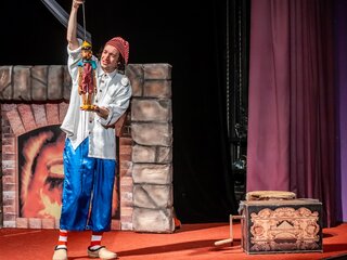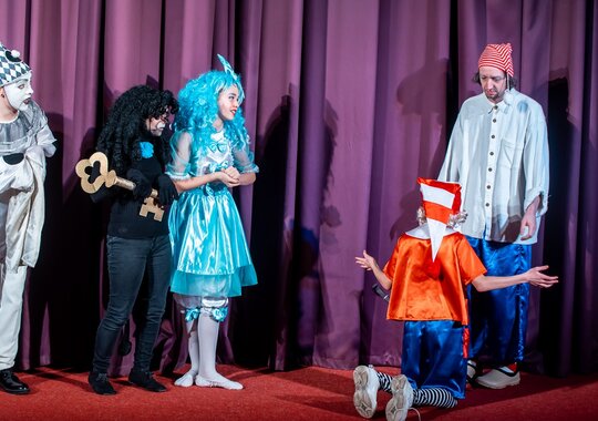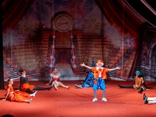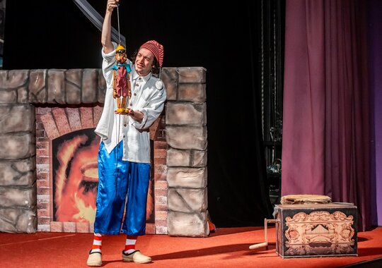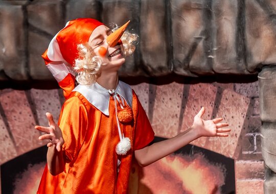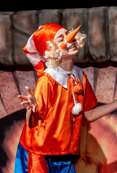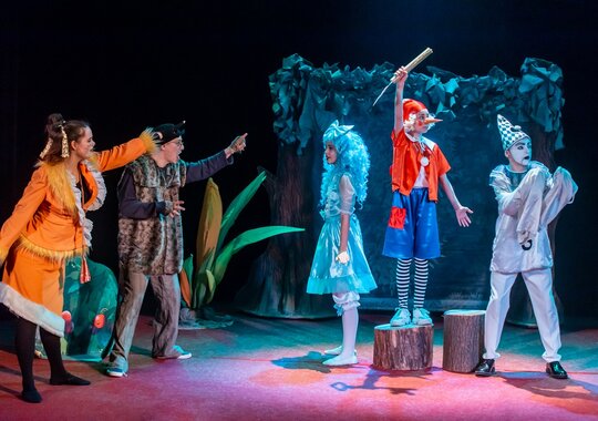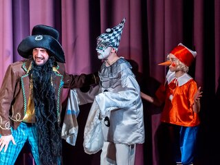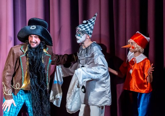 Музыкальный спектакль по мотивам сказки А. Толстого «Золотой ключик». Старая сказка рассказанная по-новому для детей от 3 лет до 70 лет. Легкая, графичная с прекрасной музыкой петербургского композитора О. Петровой. Оригинальность спектакля в том, что на сцене профессионального театра роли кукол исполняют талантливые актеры-школьники, лауреаты и дипломанты разных конкурсов и фестивалей.