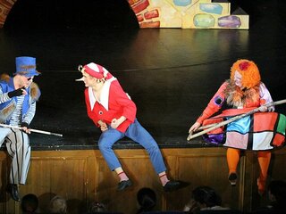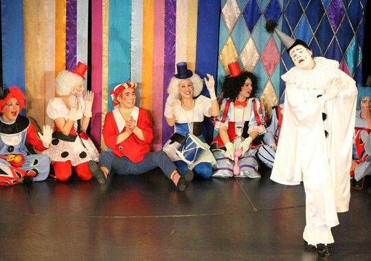 Постановка на сцене театра «На Неве» — под стать толстовской повести. В спектакле участвует множество актеров, само представление приближено к жанру мюзикла и по своей форме напоминает настоящий карнавал под жарким итальянским солнцем. Создатель постановки — заслуженный деятель искусств Татьяна Савенкова — представила произведение в стиле комедии масок. Со сцены доносятся неологизмы «бомбино истукано», «наивнячо», герои прощаются друг с другом по-итальянски и также высказывают свои эмоции, периодически вскрикивая: «О, мама миа!».