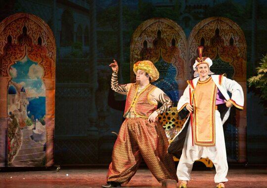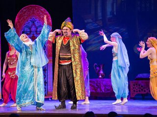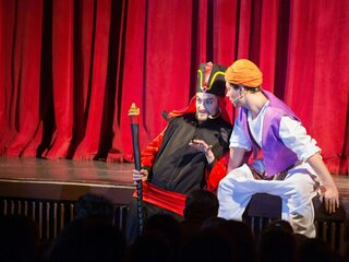 Герои мюзикла «Аладдин» создадут для вас манящую и волшебную атмосферу праздника, напоенную жизнелюбием и щедростью, радушием и мудростью Востока.
