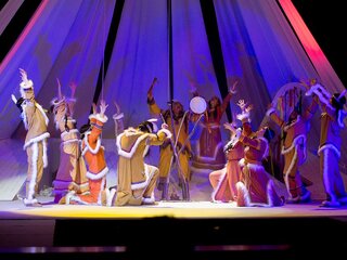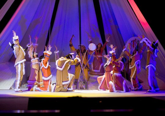 Атмосфера спектакля то магическая и страшная, то просветлённая и трепетная, создаётся впечатляющей сценографией, выразительной и оригинальной мелодикой, острыми ритмами, мастерскими стилизациями индейских песен и шаманских обрядов.