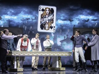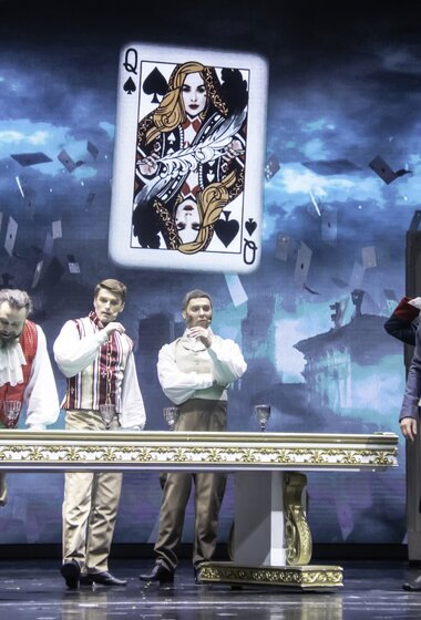 Декорации-трансформеры переносят зрителей то в роскошный французский дворец в стиле барокко, то в Летний сад, то в покои старой Графини, а дополняют действие десятки уникальных видео анимированных картин.