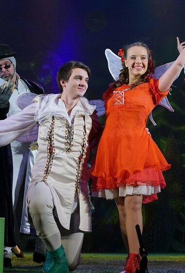 Благодаря музыкальным и театральным чудесам появление Дюймовочки из цветка покажется зрителям настоящим волшебством. Острохарактерные роли сказочных насекомых, земноводных и всяческих других животных артисты театра играют с удовольствием и увлечением, внося в характеры своих персонажей изрядную долю юмора. «Дюймовочка» — это еще и настоящий парад музыкальных жанров: здесь есть Романс Жабы, Ария Крота, Марш Жука-офицера, Мазурка Стрекоз, Хор Рыбок...