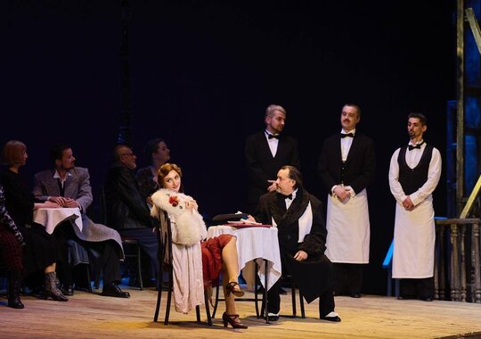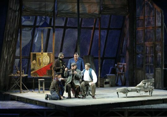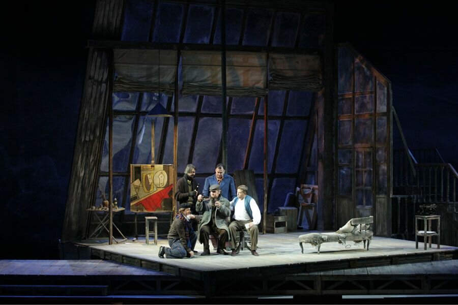 «Богема», осуществлённая английским режиссером Йаном Джаджем, оказалась одной из самых удачных пуччиниевских постановок в Мариинском театре. Она по-хорошему консервативна, и хотя действие перенесено из 1830-х в 1930-е, духу музыки это ничуть не вредит. В начале и в конце оперы, когда события совершаются в мансарде, которую снимает художник Рудольф, на сцене присутствует огромное выходящее на Латинский квартал окно: оно настолько живописно, что в программке его можно указать как героя спектакля. Интерьер кафе «Момюс», где персонажи собираются, чтобы отпраздновать Рождество, — проработан до мельчайших деталей. Он создаёт почти кинематографическую атмосферу. В ней немного сквозит тревога межвоенного времени, но она не вступает в противоречие с музыкой, — напротив, добавляет ей ощущения трагичности происходящего и усиливает те радости, которые есть в жизни героев. Этот спектакль — замечательный пример того, как можно ставить в историческом стиле и сохранять ощущение живости и свежести произведения, созданного сто двадцать пять лет назад.