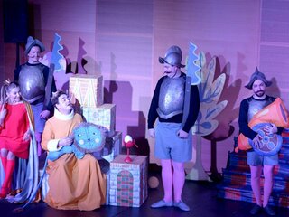 Король в сопровождении своей стражи выходит на утреннюю прогулку. Артисты, переодетые разбойниками, нападают на королевских охранников, привязывают Короля к дереву и скрываются в избушке. Король готовится к самому худшему, но Трубадур и компания «спасают» монарха, и тот обещает отдать Принцессу в жёны храброму юноше. Наутро после пышной и весёлой королевской свадьбы верные друзья вместе с прекрасной Принцессой отправляются навстречу новым приключениям.