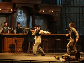 На театральных подмостках «Девушку с Запада» Пуччини сегодня встретишь не так часто, как его же «Тоску» или «Богему». В России опера сегодня идёт только в Мариинском театре.