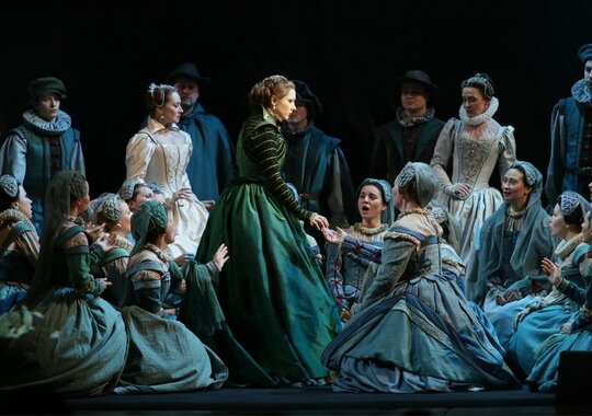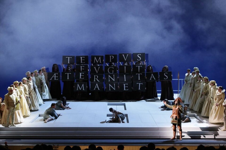 В Мариинском театре оперу «Дон Карлос» поставили соотечественники автора: Джорджо Барберио Корсетти, Кристиан Тараборрелли, Анджела Бушеми. Декорации этого спектакля минималистичны, тщательно проработанные костюмы — эффектны. Деликатная, экономная режиссура дает простор великолепным вердиевским голосам мариинской труппы.