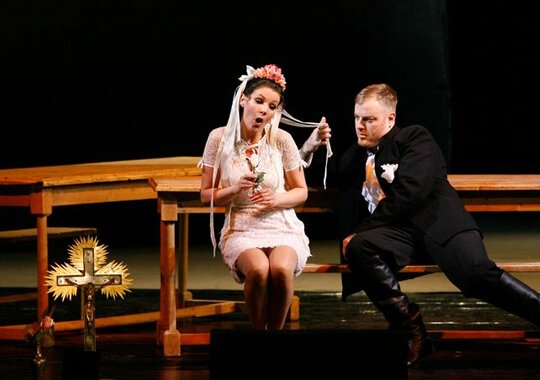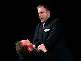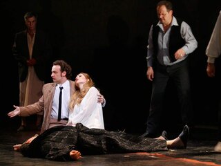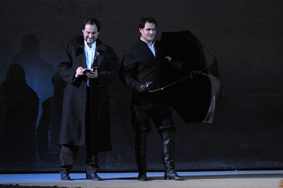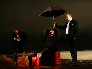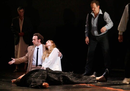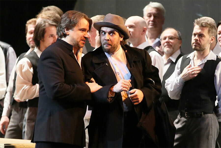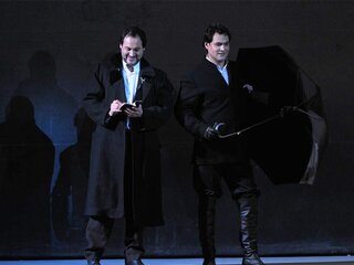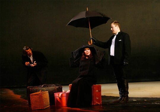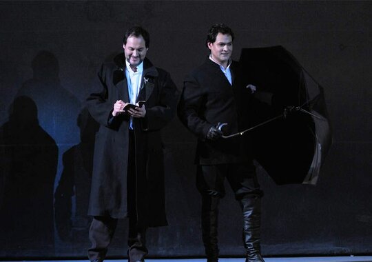Постановка Йоханнеса Шаафа минималистична, выполнена в мрачных тонах, создающих второй план даже в светлых моментах музыки, оттеняя действие рока. Большие световые пятна, несколько фактурных предметов и детально проработанные костюмы — всё это один из принятых способов избавить оперу от пышного исторического антуража, сформировать параллельно с музыкой общий эмоциональный фон происходящего и сосредоточить внимание на взаимодействии героев.