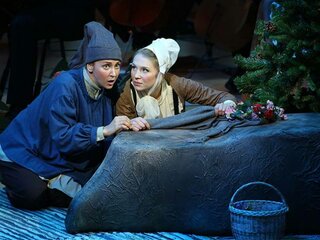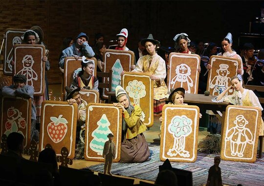 Очаровательная музыкальная сказка Энгельберта Хумпердинка (1854–1921) хорошо известна в Европе — это одно из самых репертуарных сочинений в рождественские праздники. Идея сделать из детского ужастика братьев Гримм домашний спектакль принадлежала сестре композитора Адельхайд Ветте, которая и написала либретто. Разросшуюся до размеров взрослой романтической оперы пряничную сказку Хумпердинка горячо приняли не только в Германии (премьерой 1893 года в Веймаре дирижировал Рихард Штраус), но и в России. На русской сцене «Гензель и Гретель» впервые была поставлена в Петербурге на сцене Панаевского театра (1896), чуть позже в Москве — на сцене Большого театра (под названием «Пряничный домик»), а затем в Мамонтовской опере. В Мариинском театре «Гензеля и Гретель» впервые показали 24 октября 1897 года. Оперу тогда исполняли на русском языке, но под оригинальным названием, перевод был сделан Екатериной Клетновой.