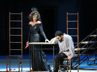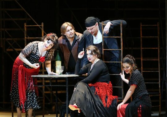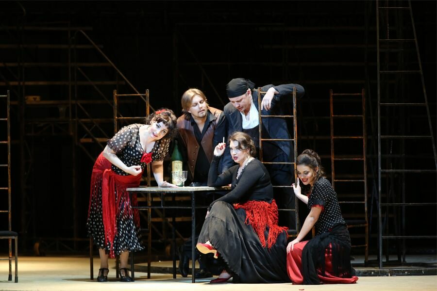 Любовь Кармен живёт полгода; любовь к «Кармен» началась через полгода после парижской премьеры, с постановки в Венской придворной опере, для которой Эрнест Гиро, друг уже умершего композитора, написал речитативы взамен разговорных диалогов. С тех пор «Кармен» неизменно собирает полные залы во всём мире. Секрет её успеха — сочный испанский couleur locale (местный колорит), созданный композитором, который, к слову сказать, никогда не бывал в Испании. Покорила «Кармен» и русских слушателей; Чайковский признал её достоинства одним из первых (Carmen, по-моему, в полном смысле chef d’oeuvrе). В Мариинском театре сегодня идёт спектакль 2005 года, обновлённый в 2016-м. Постановщики сохранили испанский колорит, но отказались от глянцевой «испанщины». Получилась почти веристская психологическая драма с дополнительными акцентами на темах насилия и власти и отсылками к древней мифологеме рока, играющего с человеком на арене его жизни.