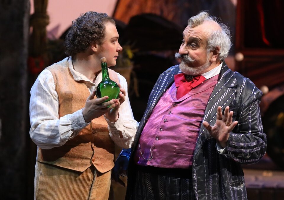 В условиях, когда примадонна — немка, тенор — заика, basso-buffo блеет козленком и осталось две недели до премьеры, а опера не написана, может родиться шедевр. Так в 1832 году появился «Любовный напиток» Гаэтано Доницетти. Либреттист Феличе Романи воспользовался беспроигрышным вариантом: в основу его произведения легло французское либретто Эжена Скриба для одноименной оперы Даниэля Обера 1831 года. Это весёлая итальянская история о богатой крестьянке Адине, которая кружит голову простодушному воздыхателю Неморино, используя для этого заезжего сержанта. Бродячий лекарь-шарлатан Дулькамара продаёт влюблённому «любовный напиток», который, тем не менее, позволяет разрешить все проблемы. Несмотря на спешку композитора, опера получилась на славу: занимательный сюжет и лёгкая мелодика обеспечили произведению долгую зрительскую любовь. Изящность, лёгкость, кажущаяся простота этой оперы и привлекли к ней внимание Михайловского театра. Спектакль рекомендован для семейного просмотра.