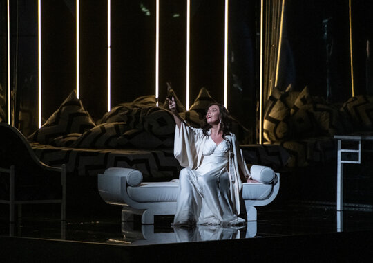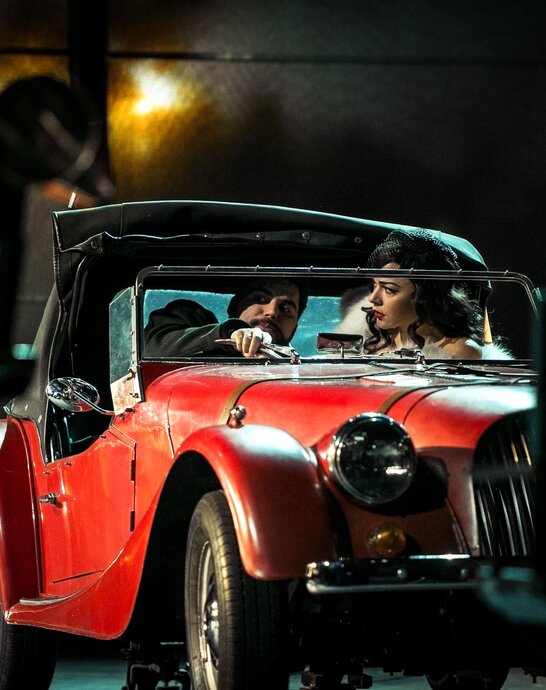 Сценография спектакля близка к стилю фильмов нуар с характерными световыми контрастами и драматичными тенями, а костюмы напрямую отсылают к кинематографу 1930–1940-х годов. Неизменным остается эмоциональное содержание, которое постановщик определяет краткой формулой: «Женщина между двух мужчин, и как следствие — катастрофа».