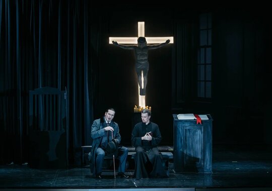 Оригинальная партитура изменилась, в спектакле остался один антракт, разделяющий первую и вторую картину третьего действия. Такое сочетание картин по замыслу даст сопоставление сумрачной атмосферы встречи «аббата де Грие» и всё ещё влюблённой в него Манон в монастыре с последующей яркой развязкой в игорном доме. Финальная картина также отличается от оригинала: действия переносятся в ментальную лечебницу, где тяжело больная Манон проводит свои последние дни, и куда на прощание приходит по-прежнему любящий её Де Грие.