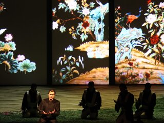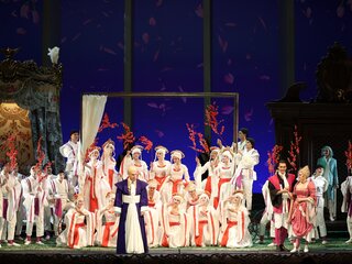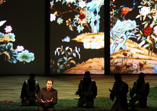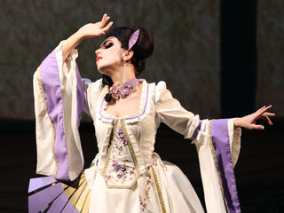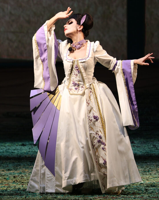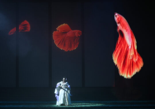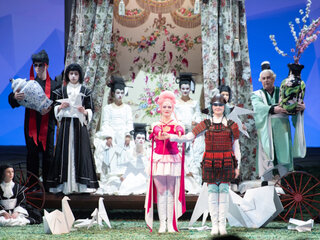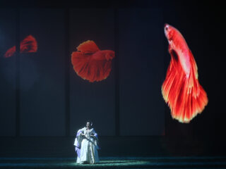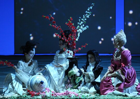 Постановщик спектакля Вячеслав Стародубцев не скрывает, что для оперного режиссера визуальные образы значат не меньше, чем музыка. Совместно с художниками-постановщиками Жанной Усачевой и Петром Окуневым он решает поместить персонажей оперы в обстановку богатого дома, где модное увлечение «китайскими штучками» влияет не только на интерьеры, но и на правила жизни.