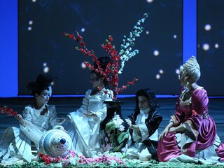 Спектакль «Моцарт. Свадьба Фигаро» Вячеслава Стародубцева исполнен восточными мотивами, которые отразятся и в стиле актерского существования. В работе над постановкой одной из главных опер Вольфганга Амадея Моцарта режиссер вдохновлялся модной в европейском искусстве конца XVIII века стилистикой шинуазри.