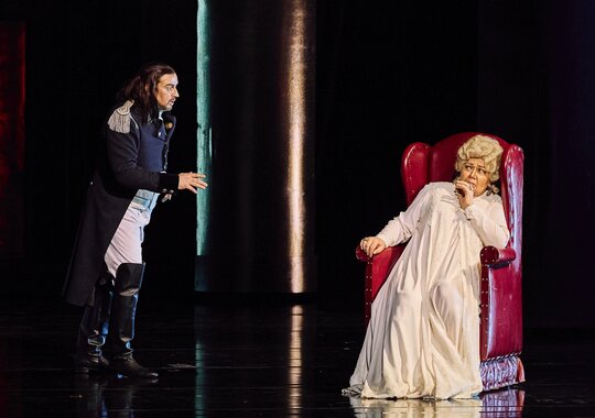 Триумфальная мировая премьера предпоследней оперы Чайковского состоялась в Мариинском театре в 1890 году. Ныне в театре идет спектакль Алексея Степанюка, поставленный в 2015 году на новой сцене. Он пронизан атмосферой призрачного и величественного северного города. Сценографические лейтмотивы обыгрывают хрестоматийные приметы Петербурга: колонны, скульптуры, гранитный шар. Со строгой графикой декораций контрастируют роскошные костюмы. Из пушкинского текста постановщики заимствовали наполеоновский мотив, представив Германа как человека с безудержными амбициями, гордеца «с профилем Наполеона и душой Мефистофеля». Пытаясь компенсировать своё одиночество властью и богатством, Герман нарушает фундаментальный нравственный закон, сформулированный его современником, философом Кантом: всегда относиться к человеку как к цели, и никогда — как к средству. И всё же последнее видение умирающего героя — не инфернальная Пиковая дама, а «небесное создание» — Лиза. Жизнь-игра окончена, и только проиграв всё, Герман обретает мир.