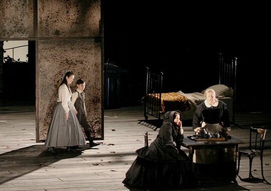 Опера Бенджамина Бриттена. Исполняется на английском языке (сопровождается синхронными титрами на русском и английском языках). Действие первое: Некто рассказывает о молодой женщине, которая была нанята гувернанткой к двум детям, живущим в загородном доме. Молодую женщину встревожило условие, поставленное опекуном детей: он больше никогда ничего не хочет о них слышать. Но заворожённая его обаянием, она соглашается их воспитывать. Тем не менее по дороге к месту работы женщину не оставляют сомнения: правильно ли она поступила, приняв это предложение? Однако все её сомнения счастливо рассеиваются, когда она прибывает в Блай. Наученные экономкой миссис Гроуз, как себя вести при встрече с новой гувернанткой, Майлз и Флора совершенно покорили свою воспитательницу. Дети радушно знакомят её с домом и усадьбой. Жизнь в Блае идёт спокойно. Но однажды Гувернантка получает письмо из школы Майлза, в котором сообщается о том, что мальчик исключён. Она потрясена и пытается дознаться у экономки, проявлял ли Майлз когда-нибудь дурные наклонности. Миссис Гроуз встаёт на защиту мальчика. Их беседу прерывает игра Майлза и Флоры. Очарованная невинностью этой детской игры, Гувернантка решает не рассказывать Майлзу о полученном ею письме. Во время прогулки по саду, Гувернантка заметила незнакомца, который внимательно смотрел на неё. Испуганная, она поспешила позвать детей и вернуться в дом. Но в гостиной Гувернантка вновь увидела его. Когда она описала внешность странного мужчины миссис Гроуз, та признала в нём недавно умершего камердинера Питера Куинта. Судя по рассказу экономки, на Куинта была возложена ответственность за ведение хозяйства, но он начал злоупотреблять своим положением. Предыдущая гувернантка мисс Джессел — любовница Куинта — была вынуждена оставить место и вскоре умерла. Сам Куинт погиб во время несчастного случая. Испуганная Гувернантка опасается, что дух Куинта вернулся для того, чтобы забрать детей, и решает защитить их. Гувернантка наблюдает, как её воспитанники делают уроки. Майлз повторяет латинские склонения и внезапно произносит неизвестную ей мнемонику. Когда Гувернантка спрашивает, где он её нашёл, мальчик отвечает: «Нашёл, и мне она нравится, а вам?. Флора и Гувернантка сидят на берегу озера. Гувернантка замечает женщину, которая стоит на противоположном берегу и смотрит на них. Она не сомневается в том, что это мисс Джессел и что Флора её тоже видела. Мощная сила внушения Куинта и мисс Джессел заставляют спящих детей выйти в ночной сад. Обезумевшие от тревоги Гувернантка и миссис Гроуз мечутся в поисках Майлза и Флоры, наконец находят их и отправляют в дом. «Теперь вы видите, какой я плохой?» — заявляет Майлз Гувернантке. Действие второе: Питер Куинт и мисс Джессел с горечью беседуют о своих переживаниях. Гувернантка ощущает чувство беспомощности перед окружившими её силами зла. В местной церкви начинается воскресная служба. Раздаются звуки органа. Флора и Майлз в это время играют в слова, используя текст благословения. Миссис Гроуз умиляется, глядя на детей. Но Гувернантку эта игра пугает: она не сомневается в том, что они одержимы духами. Миссис Гроуз приглашает всех войти в церковь и подталкивает Флору внутрь. Перед тем как последовать за сестрой, Майлз спрашивает, когда он снова вернётся в школу и разделяет ли 